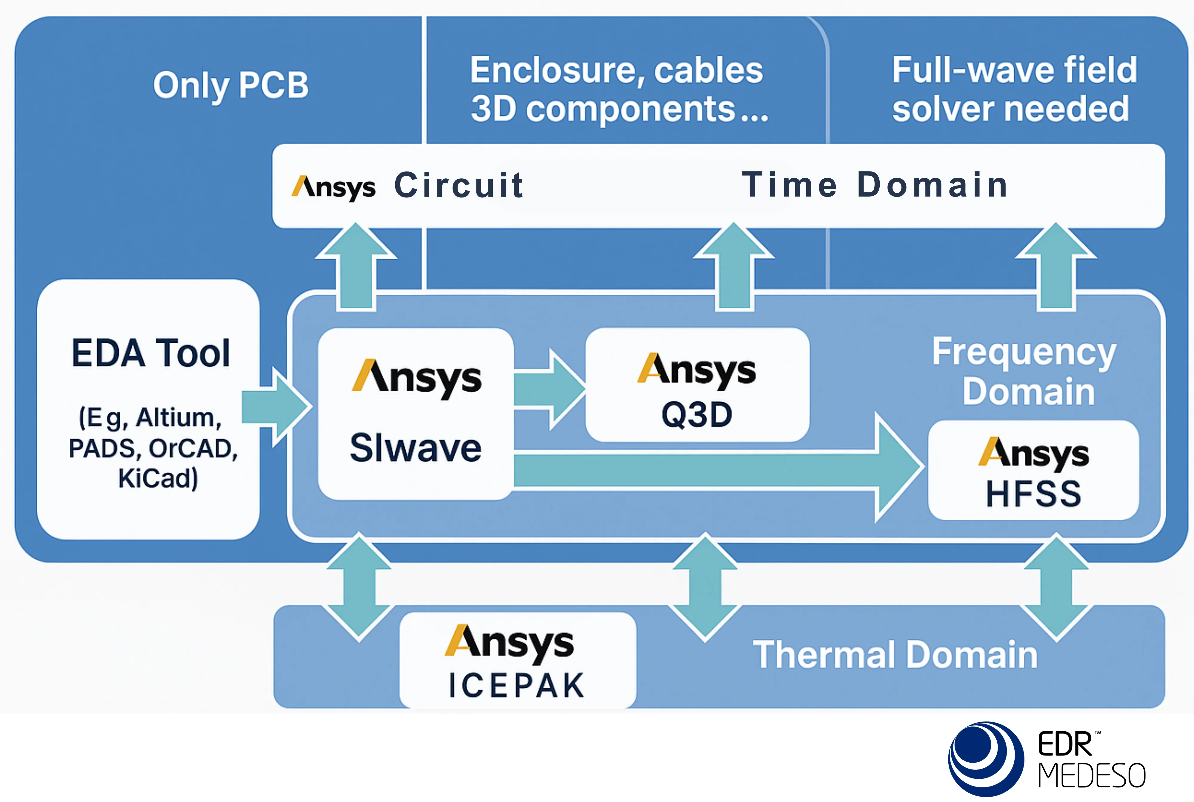 Modern electronic systems are pushing performance limits across every domain. The picture below illustrates how engineers can connect every stage of the design flow using Ansys simulation tools, creating a unified digital thread from EDA to electromagnetic and thermal verification.